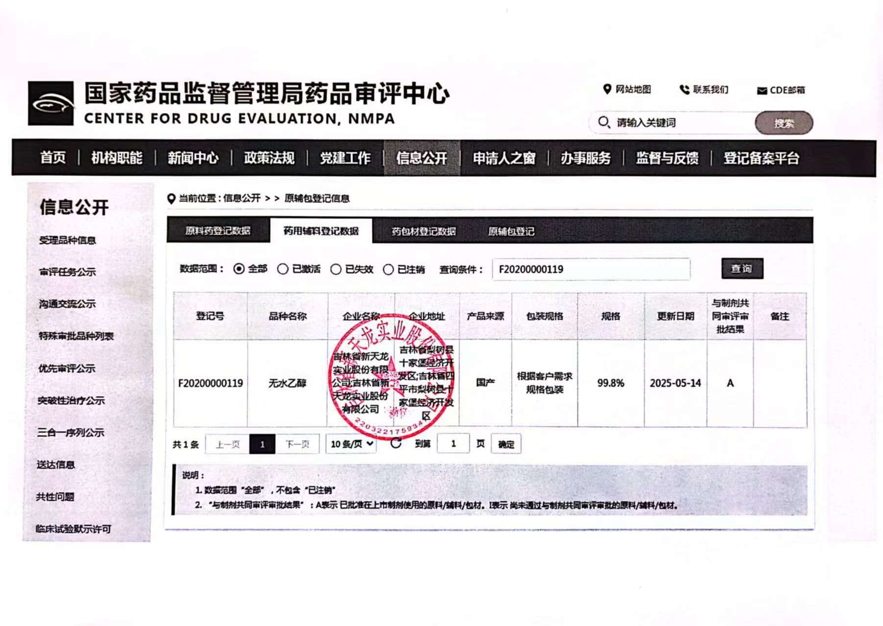 新天龍公司藥用無水關(guān)聯(lián)評(píng)審已通過